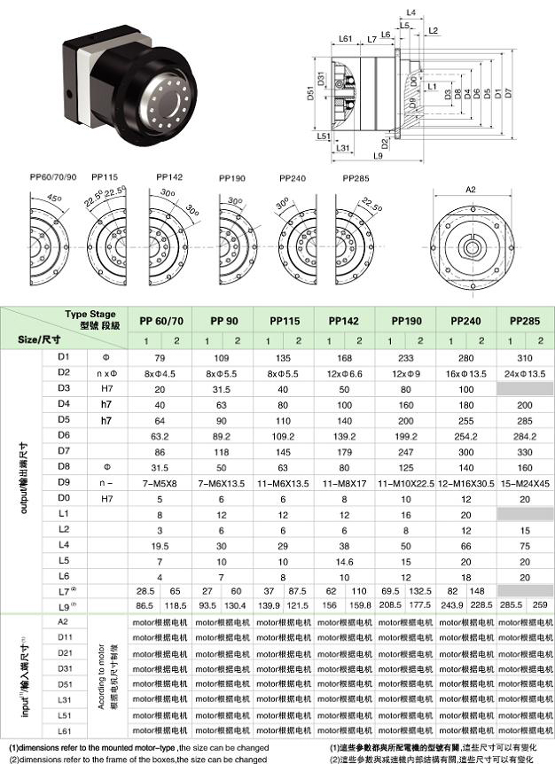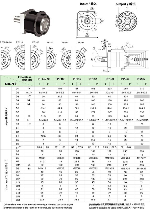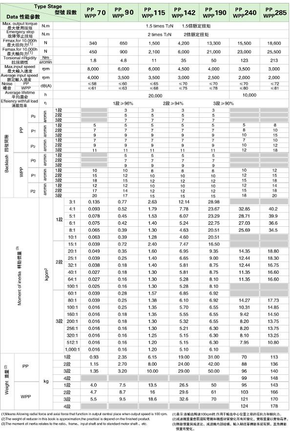 PP/WPP 系列精密行星減速機(jī)技術(shù)參數(shù)